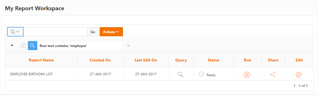 Your report will be added to your ‘My Reports Workspace’.