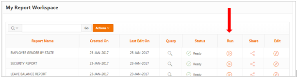 This will then show you the actions which you can undertake in the report action section. You will find the run icon there.